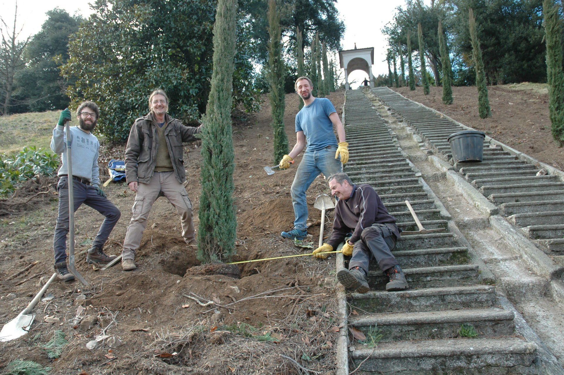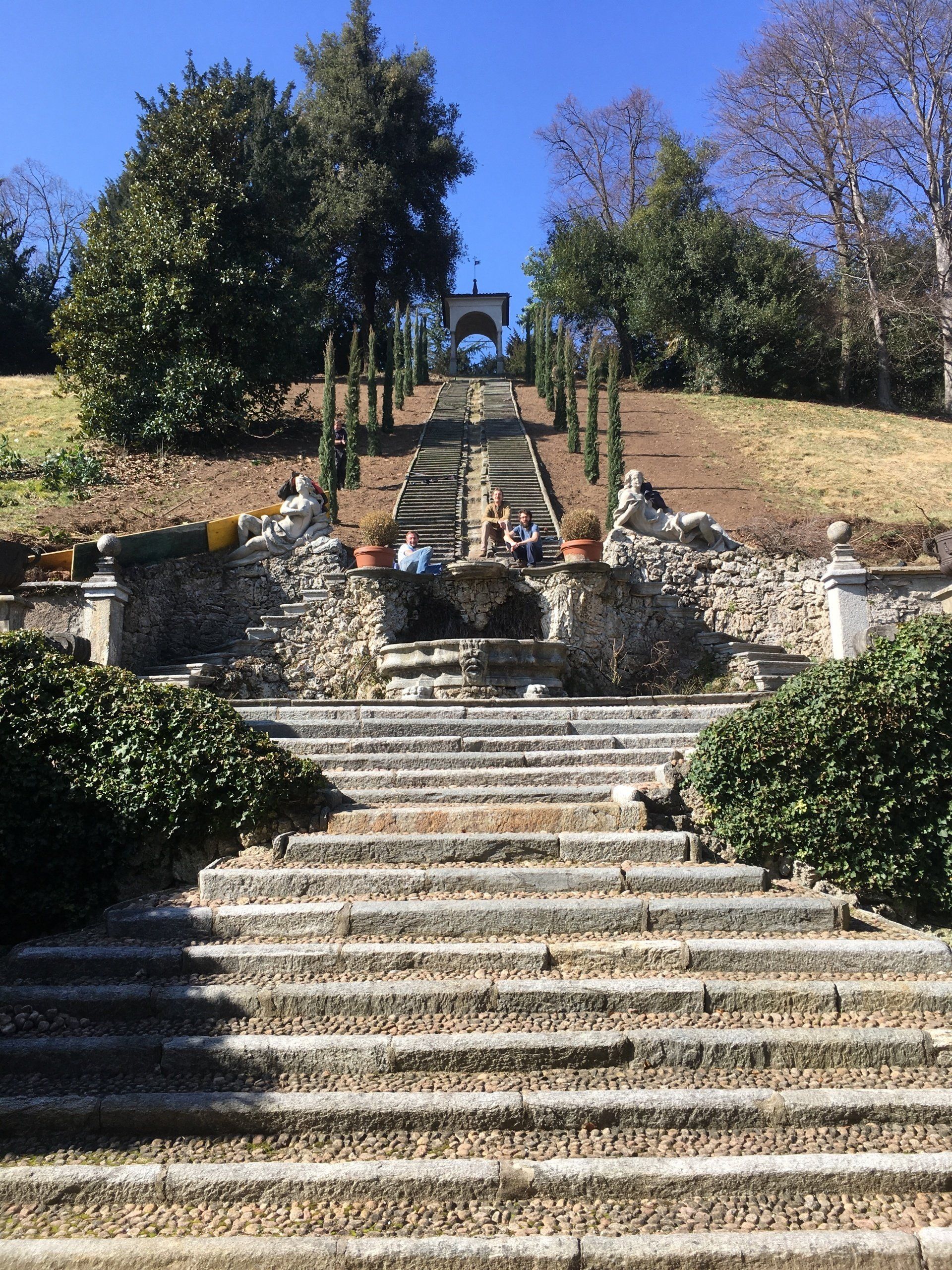 It's not every day or even every year that you get an opportunity to work in one of the World's great Historic gardens so, after our efforts at Villa Cicogna Mozzoni, Jacopo, Silvia and Francesco Cicogna Mozzoni took the whole team to a top restaurant for a most fabulous meal for helping their own team to remove the huge conifers which were 'choking' the ancient water staircase and then replacing them with Italian Cypress. Jacopo nicknamed us 'The Cypress Squad'. We all had pretty good appetites but the generosity of our hosts and the incredible meal meant that we were outfaced on this occasion! But we all enjoyed a most wonderful adventure and an amazing experience. Thanks to you, Jacopo, Silvia and Francesco.